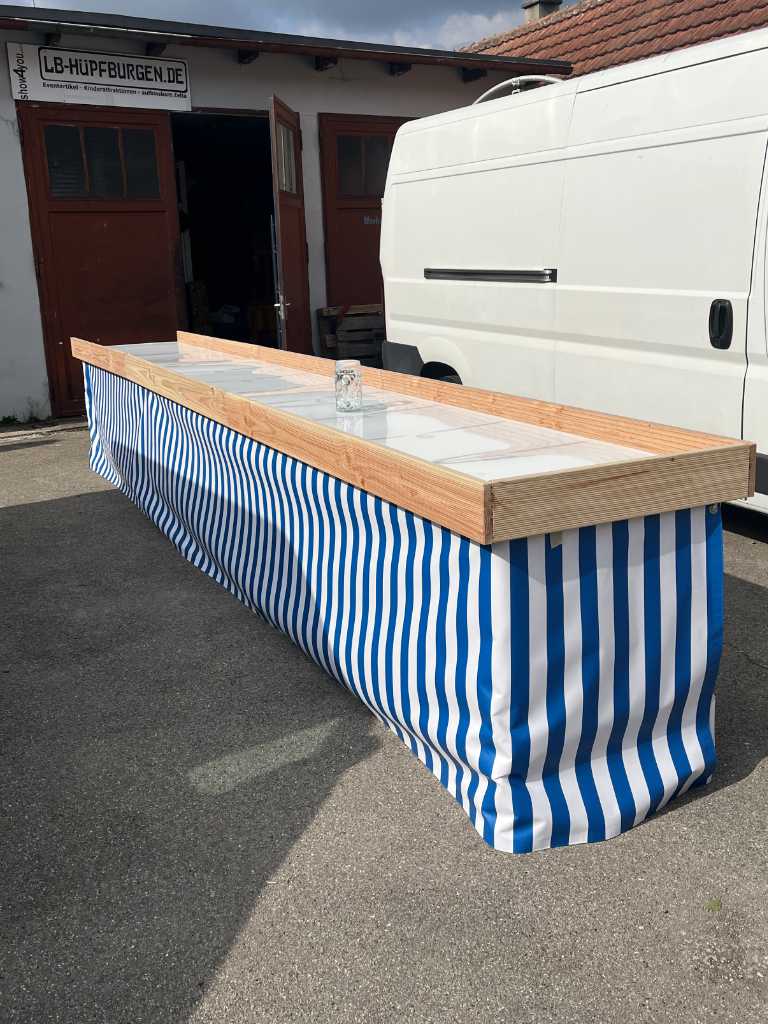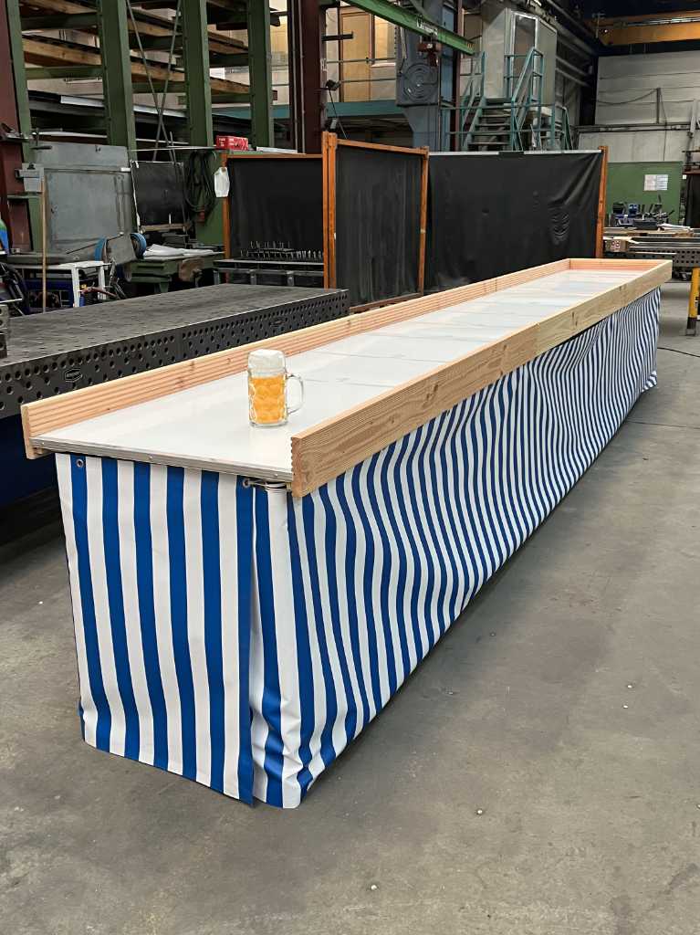 Optisch überzeugt die Bahn mit einem blau-weißen Skirting, das sofort an das bayerische Oktoberfest erinnert und ein echter Eyecatcher auf jeder Veranstaltung ist. Ob Firmenfeier, Volksfest oder private Feier – Maßkrugschieben garantiert Spaß, Wettbewerb und gute Stimmung für Gäste jeden Alters.