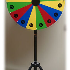 Auf die WunschlisteGlücksrad mit 80cm Durchmesser auf Stativ im Standard mit 16 Felder in 4 Farben optional mit individuellem Design oder Branding.