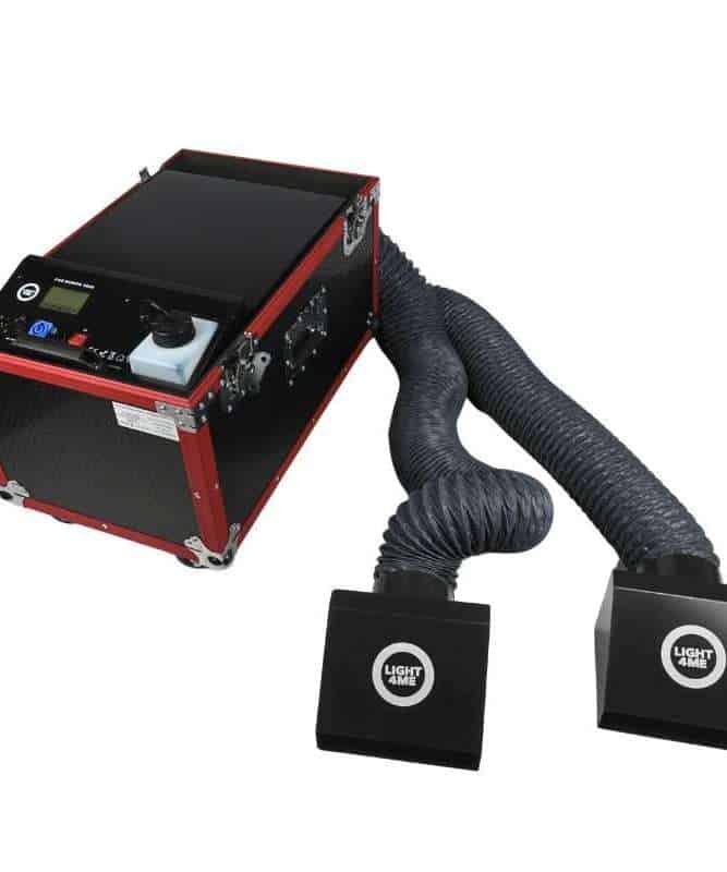 Die BeamZ ICE1800 erzeugt dichten, bodennahen Nebel ohne teure CO₂-Kartuschen. Die Maschine arbeitet mit normalem Nebelfluid und Eis, wodurch der Nebel schwer bleibt und sauber über den Boden zieht.